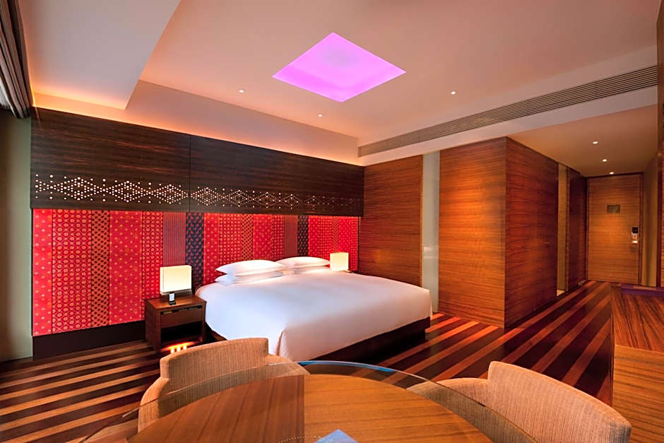 The stylish 2-story suite is located on the 26th floor. It offers a King-sized bed and views of Xintiandi entertainment area or Huaihai Road shopping street. The bathroom includes floor heating, a separate electronic toilet and a Typhoon shower. It comes with an iPod docking station, unlimited local calls, daily newspaper and a mini-bar.
